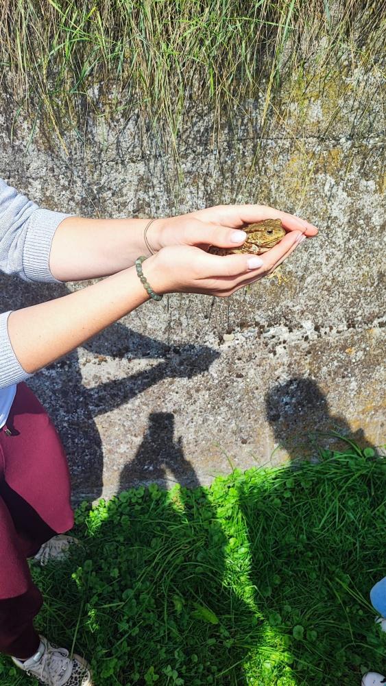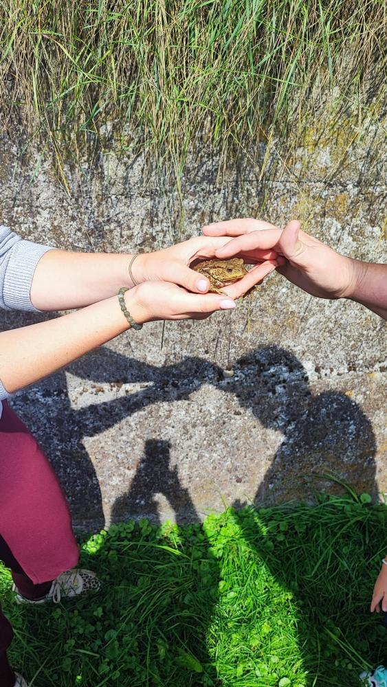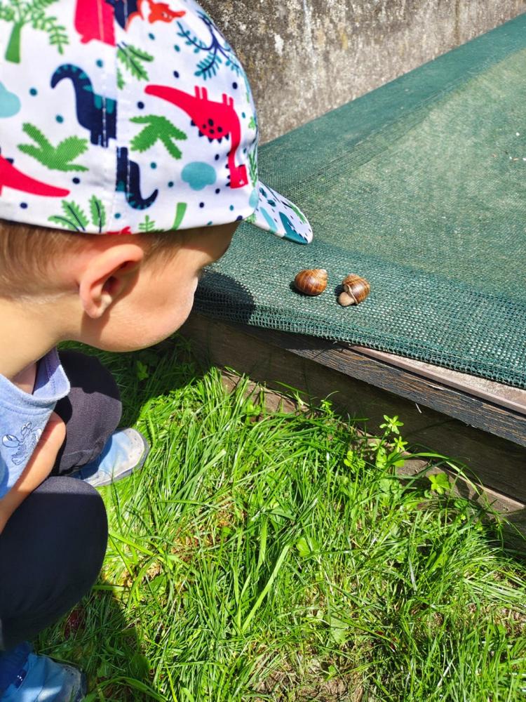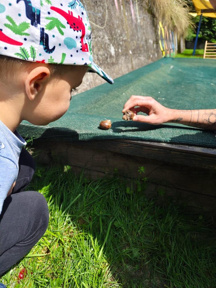 Mit großen Augen und viel Neugier beobachteten die Kinder, wie sich die Schnecke langsam ihren Weg bahnte und der Frosch flinke Hüpfer machte. Es wurde gestaunt – und natürlich auch ganz vorsichtig gestreichelt.